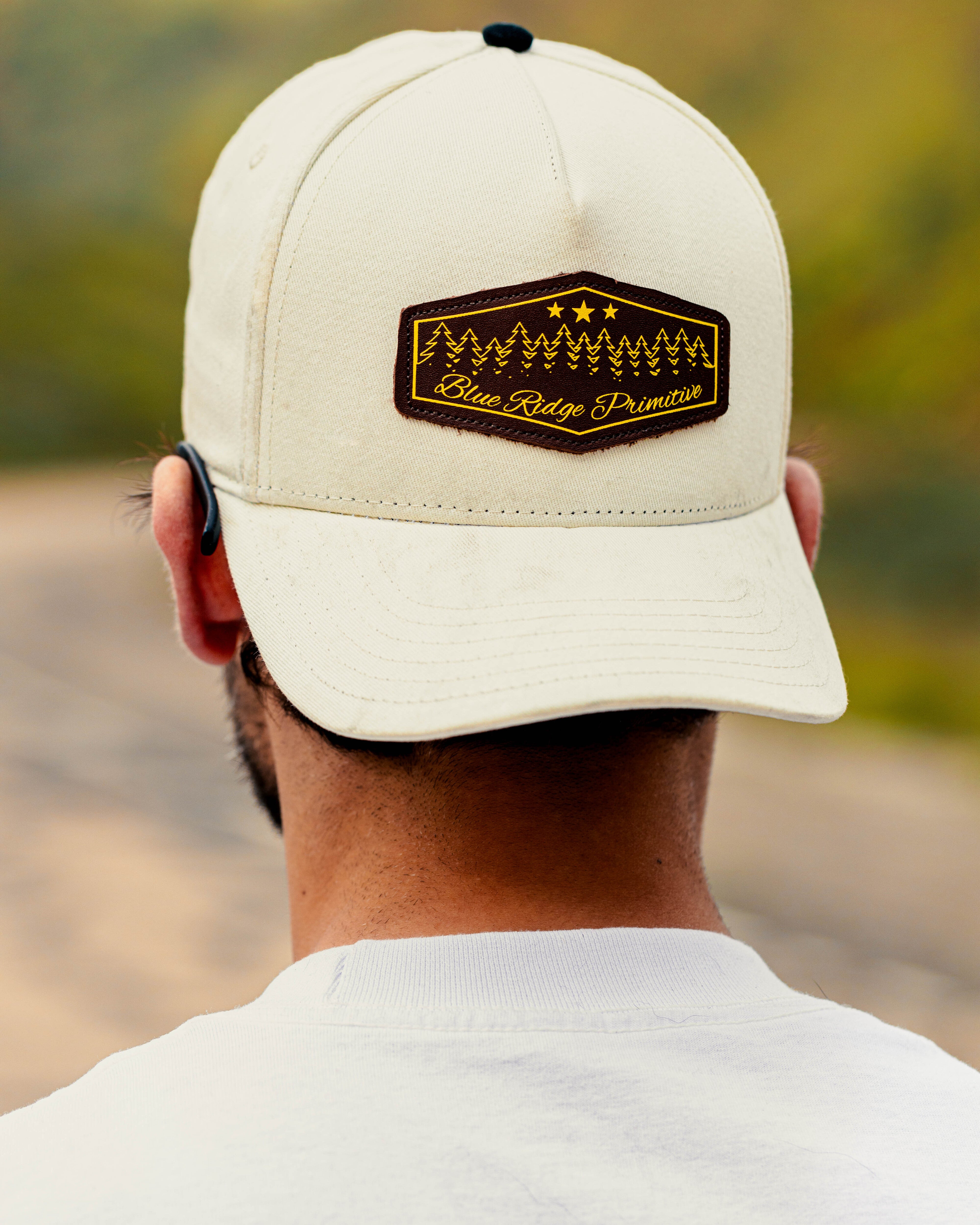 Crème Cotton Twill Material. Plastic Snapback for Adjustment. High Quality Leather Patch on Front.